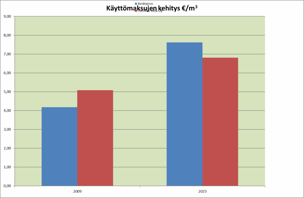 Vuonna 2009 Tornion Vesi Oy:n vertailuhinta oli 22 % valtakunnallisen keskiarvon yläpuolella. Vuonna 2025 taksa oli 10,63 % keskiarvoa alhaisempi. Taksojen korotus on ollut Torniossa huomattavasti maltillisempaa kuin valtakunnassa keskimäärin.